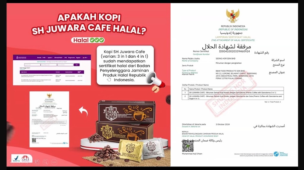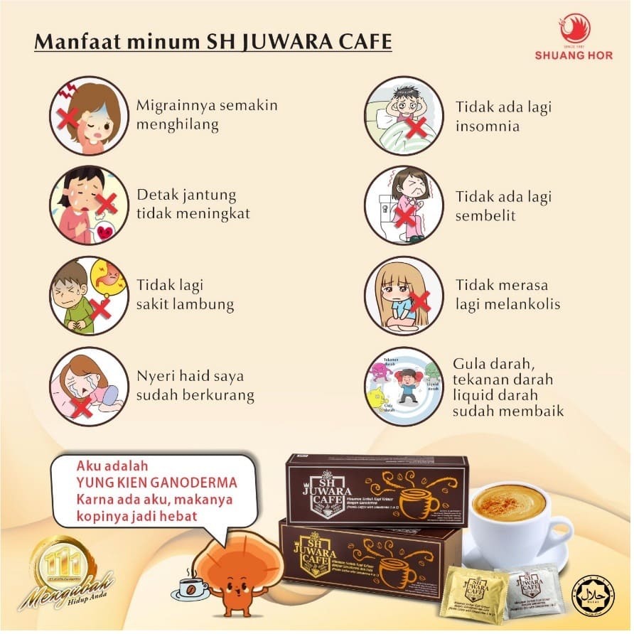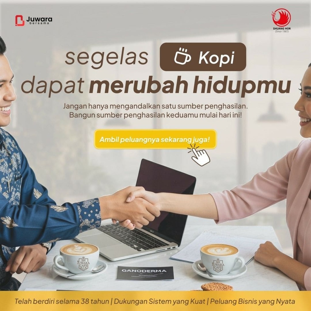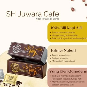 SH Juwara Cafe adalah merk kopi yang dibuat dari biji kopi Arabica pilihan dari Brazil telah hadir di Indonesia setelah penantian bertahun tahun untuk mendapatkan perizinan, kini hadir dengan marketing plan yang menarik serta memberikan keuntungan yang besar bagi agent SH Juwara Cafe.
