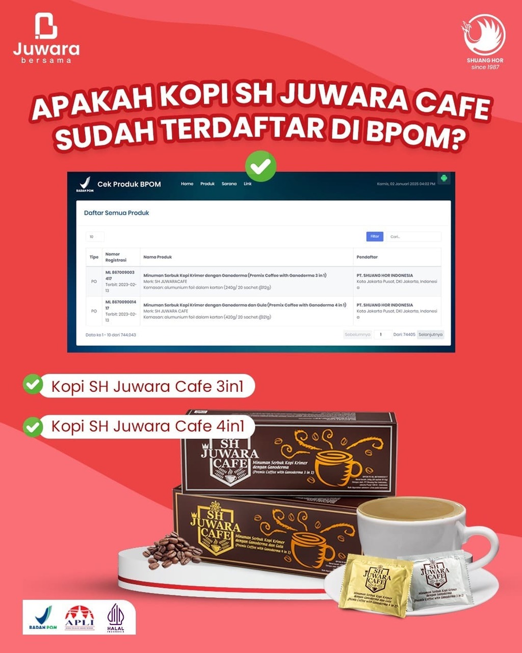 Satu cangkir kopi SH Juwara Cafe akan memberikan kesegaran, kesehatan dan menambah penghasilan.